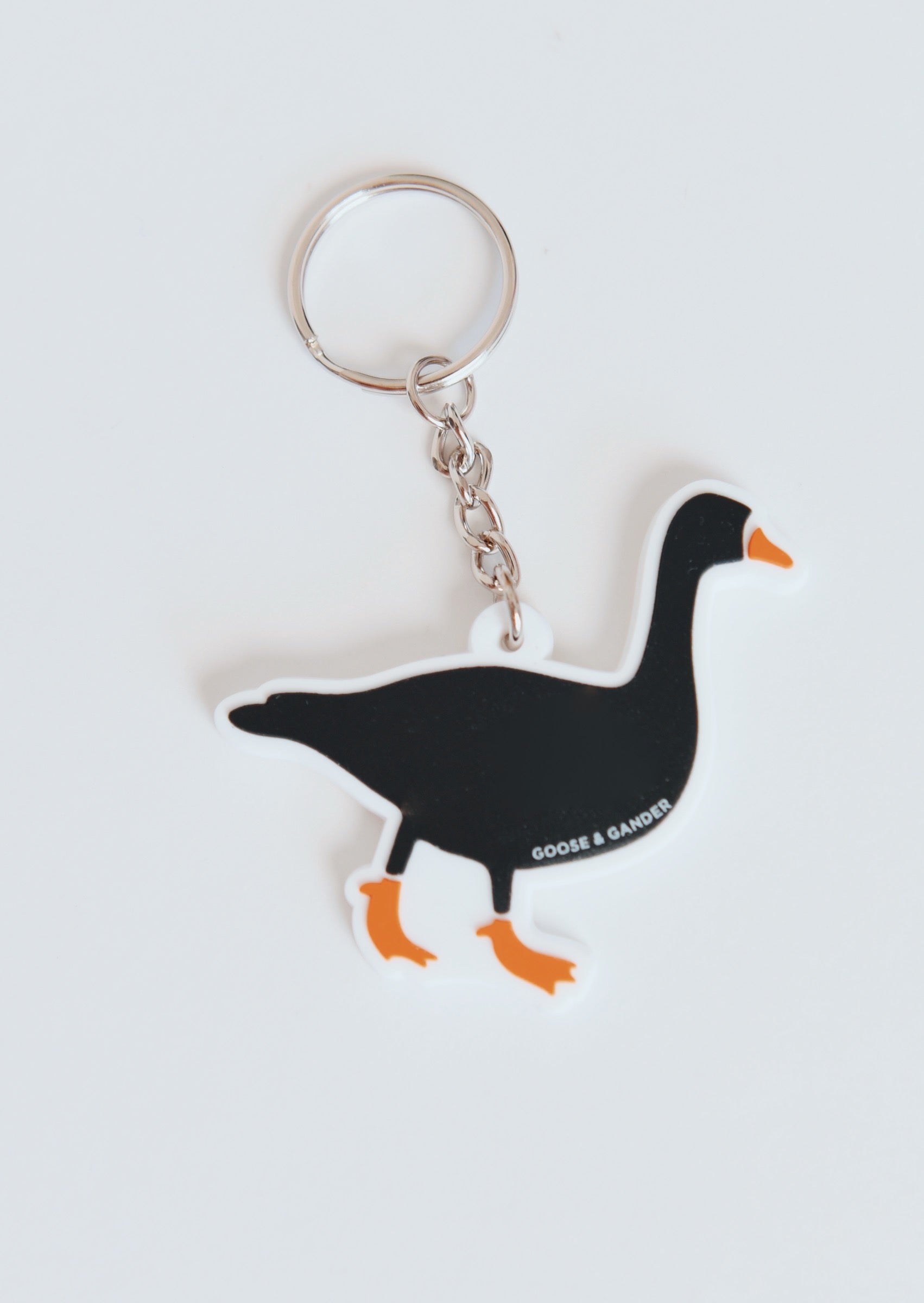 This playful Goose & Gander keyring features our original goose silhouette. Take our iconic goose with you wherever you go.
